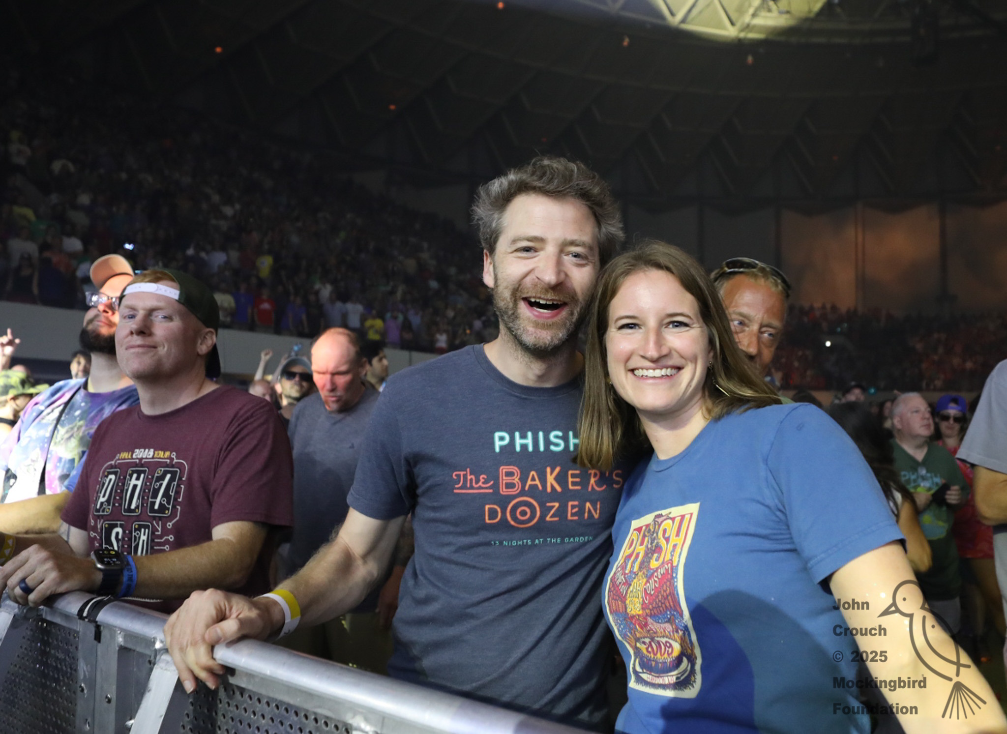 I met a couple the second night and the woman was wearing a t-shirt of the 2009 Pollock Phoenix Print, I asked her if she was there and she said it was her first show. Sixteen years later she’s notched 70 Phish shows! Press photographers at a concert are shameless about taking photos of the front row fans, who mostly are shameless for it (or that’s how it feels). I snagged a couple good ones of them and was able to share them.